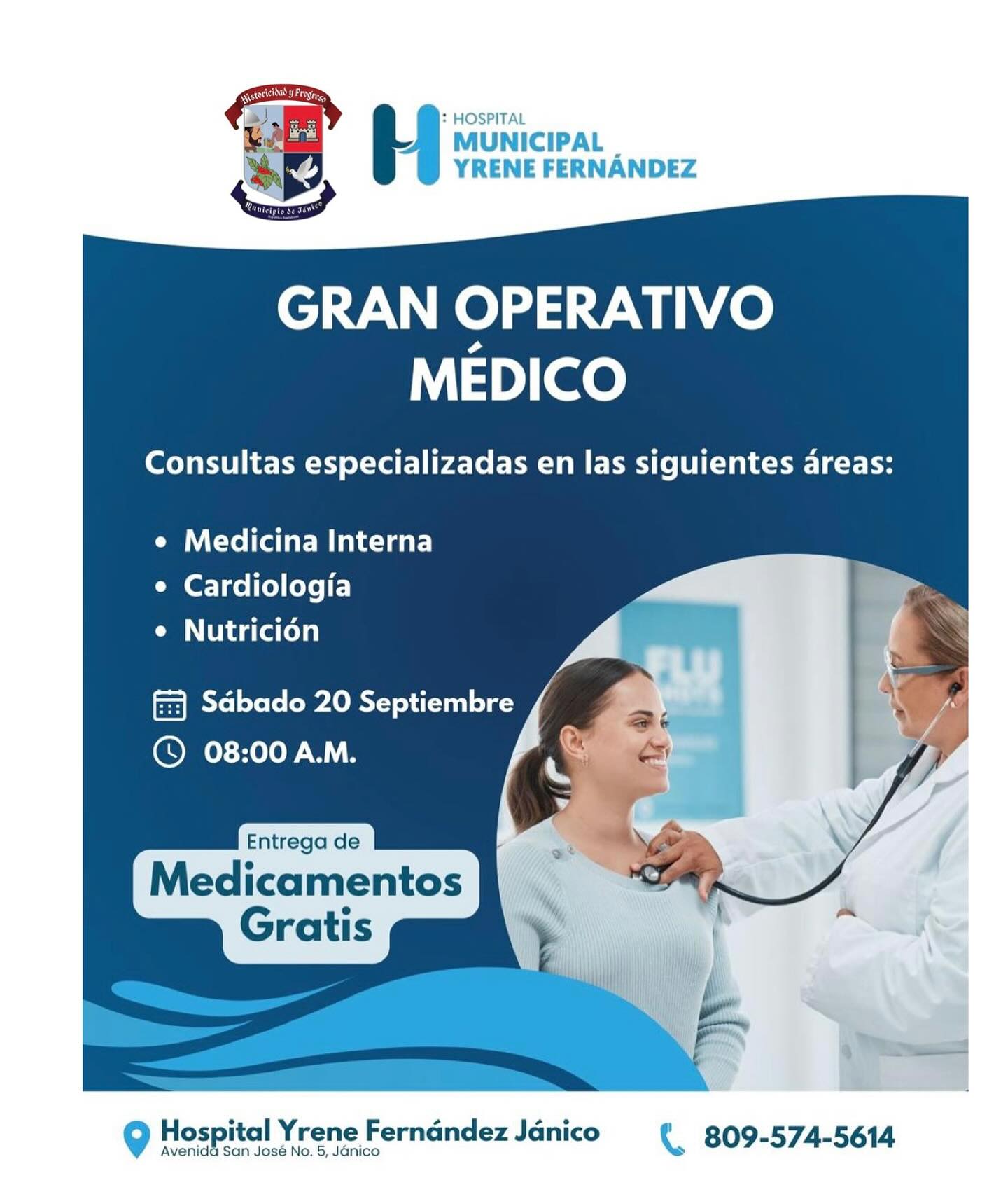 Este Sábado 20 de septiembre ven al Hospital Municipal Yrene Fernández de Jánico y participa en el gran operativo médico.